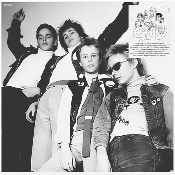 GLO was Gothenburg's youngest and cockiest first wave punk band. Growing up in the little seaside resort sa south of Gothenburg they formed in 1976 when the members were only 13 years old. With their raw and catchy style they got loads of press and gigs despite their youth. The first single Discoäckel is a true punk classic. STRUTFUTAR FRN D collects tracks from the "Ljusåret Kommer" album, GLO:s two original EP:s, the posthumous Ruttna Radion 7" and two previously unreleased tracks. Youth isn't always wasted on the young.