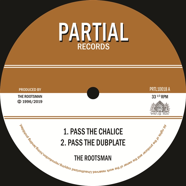 Limited edition repress originally released on Partial in 2019. Vintage nuggets from the vaults of The Rootsman and Third Eye Studio Pass The Chalice' incorporates that heavy UK dub sound of the 1990's while Tribal Dervish employs that middle eastern flavour of which The Rootsman's work became associated with. Dating from 1996, three of the tracks have been out of circulation on vinyl for some time while Tribal Dervish Dubplate Mix' appears on vinyl for the very first time.